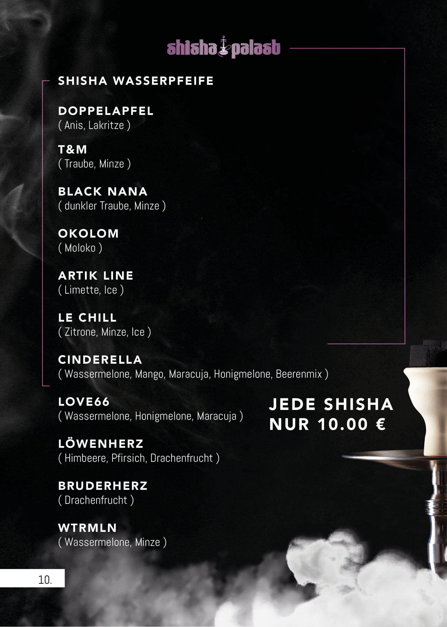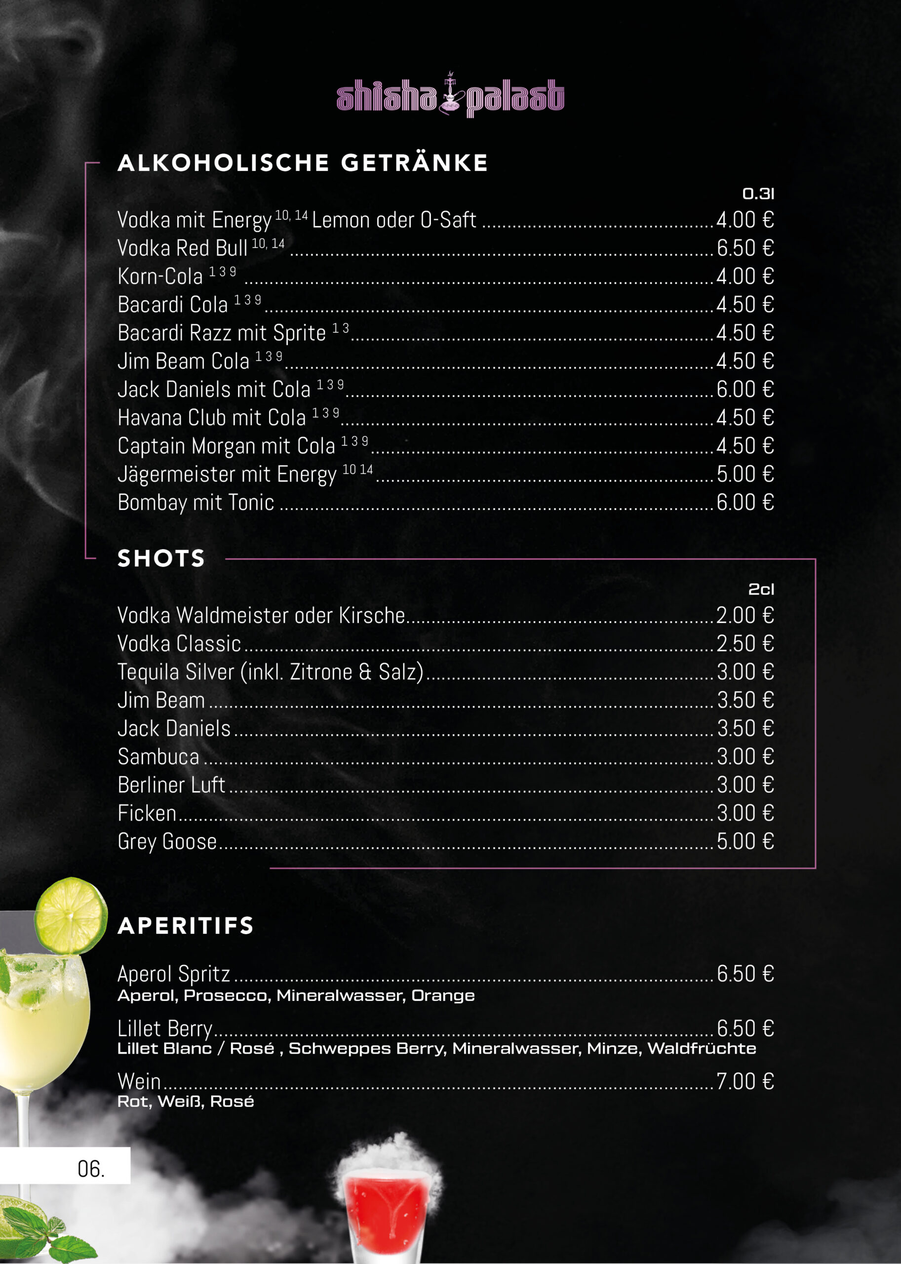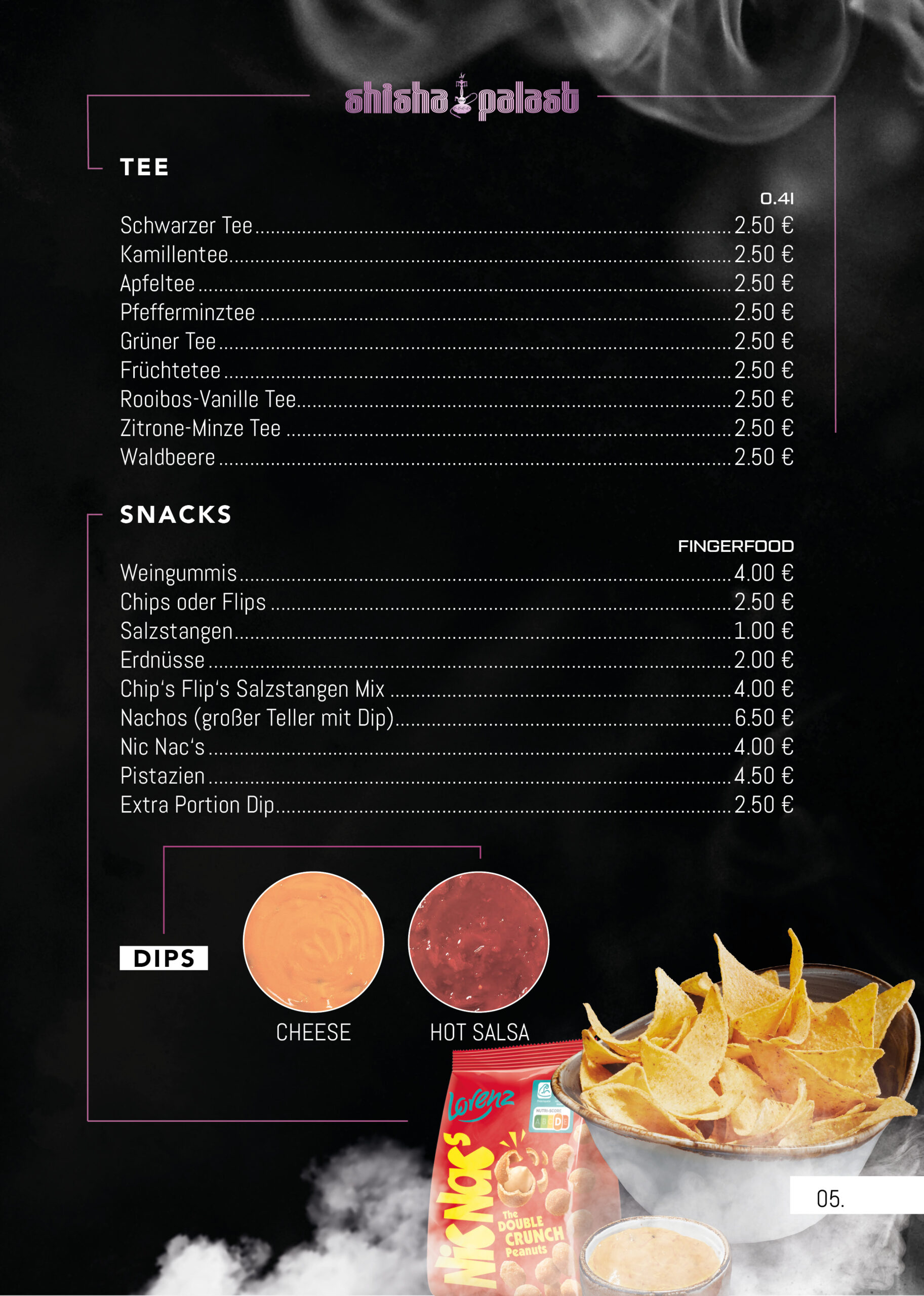 Einen Überblick über unser vielfältiges Shisha, Snacks & Cocktails finden Sie hier.