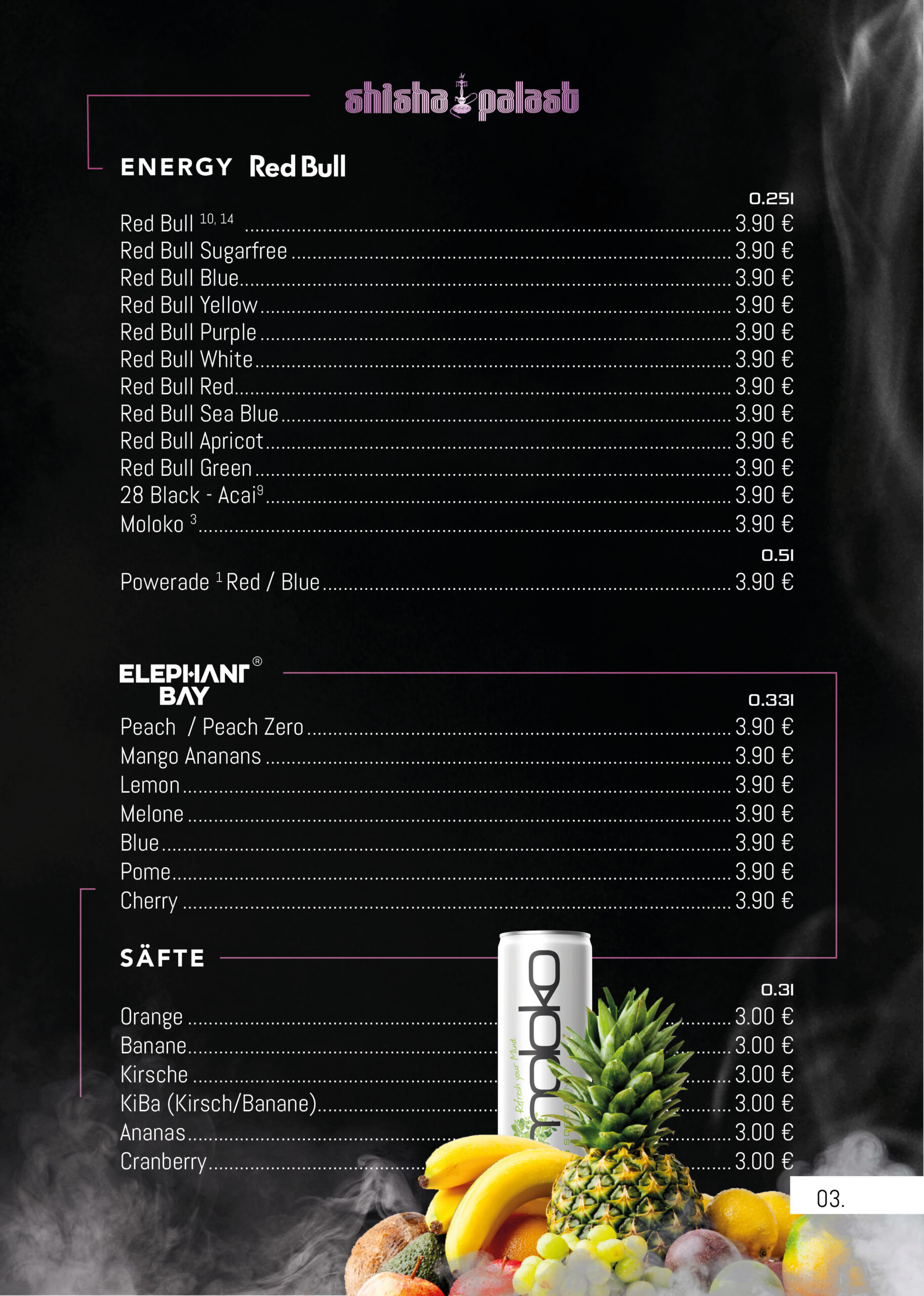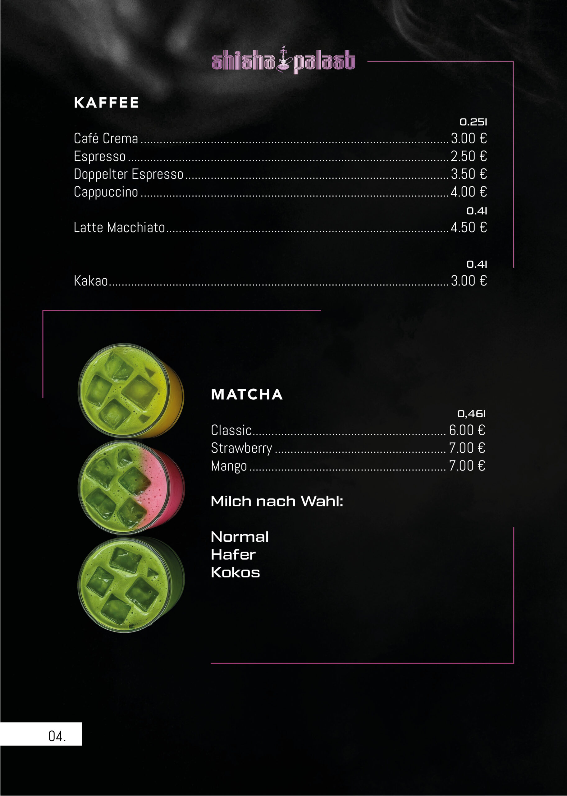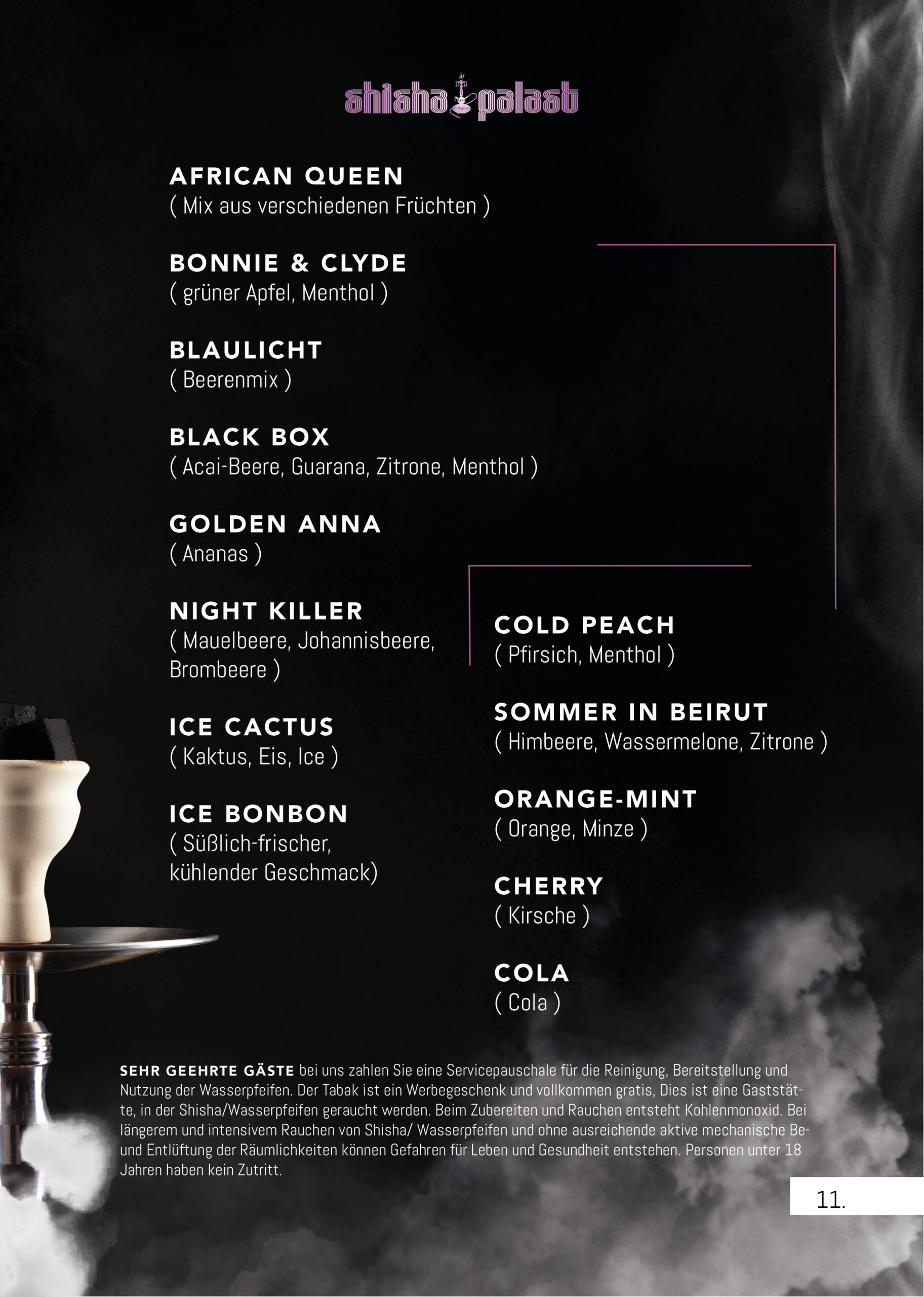 Einen Überblick über unser vielfältiges Shisha, Snacks & Cocktails finden Sie hier.
